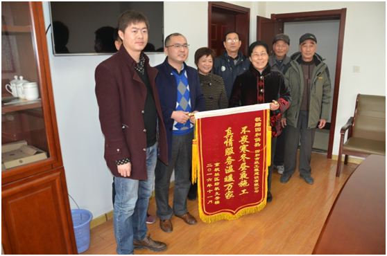 “你們的服務(wù)真是太周到了!終于解決了我們小區(qū)多年來的集中供熱問題,我們代表紡機(jī)廠宿舍全體熱用戶向你們表示忠心感謝!”11月30日下午,紡機(jī)廠宿舍幾名熱用戶來到濟(jì)寧四和供熱有限公司,送來一面繡有“不畏寒冬晝夜施工真情服務(wù)溫暖萬家”的錦旗,對四和供熱公司工作人員認(rèn)真負(fù)責(zé)、高效便民的優(yōu)質(zhì)服務(wù)表示感謝。