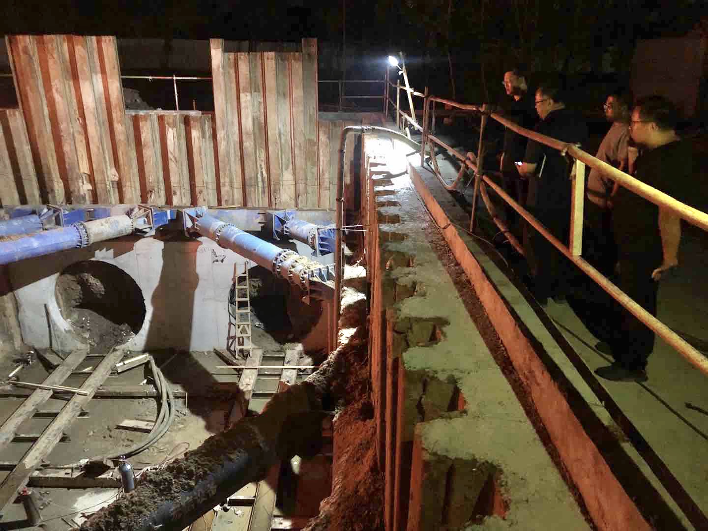李聲播要求,一是施工單位必須做好開工前施工現(xiàn)場(chǎng)的安全隱患排查工作及作業(yè)人員的安全教育工作,確保每位作業(yè)人員始終安全著裝,特別是在交叉作業(yè)、機(jī)械吊裝、基坑底部作業(yè)防絆倒、臨時(shí)安全用電、夜間施工及24小時(shí)作業(yè)等方面,抓實(shí)抓好隱患排查采取有效的防范措施。二是DN2400大口徑鉆探機(jī)的設(shè)備檢查、運(yùn)行調(diào)試、注漿管防破裂等工作要落實(shí)到位,頂進(jìn)前必須排除隱患問(wèn)題,形成切實(shí)有效的防范措施預(yù)案。