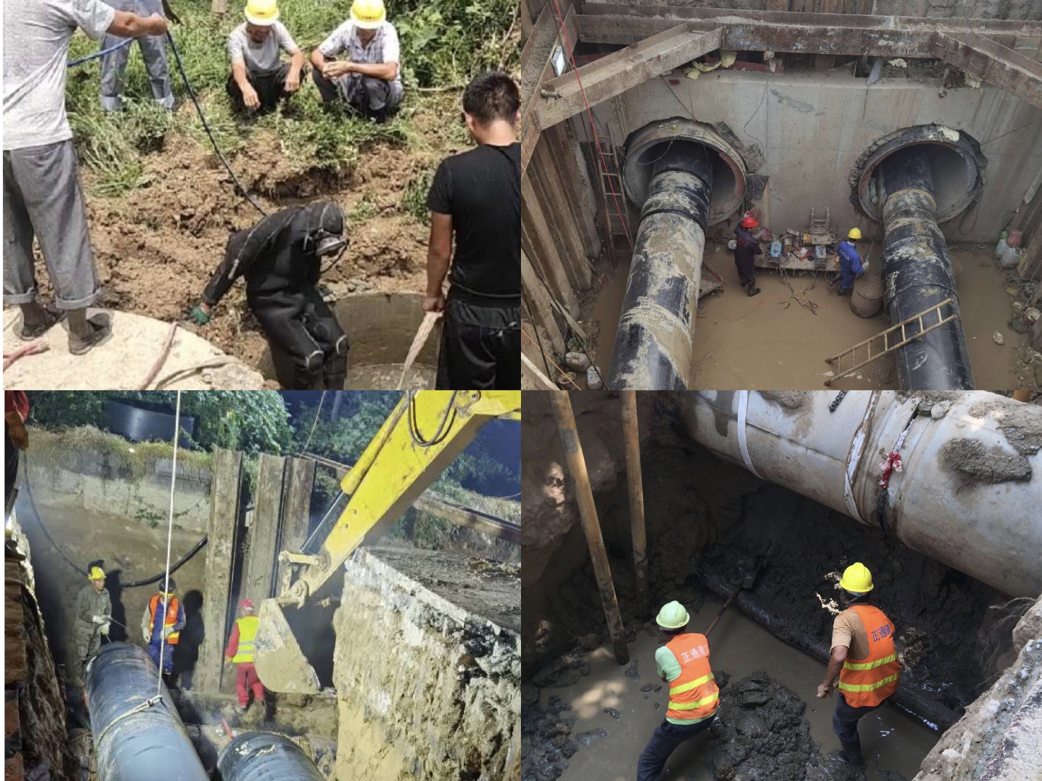 西部熱源替換工程嘉祥電廠線供熱管網(wǎng)總長(zhǎng)15.3公里,工程作業(yè)面環(huán)境復(fù)雜。涉及清障7.5公里,穿越老運(yùn)河1處、頂管作業(yè)2處、涵洞4條、并行污水管1公里。面對(duì)工期緊、任務(wù)重、施工難度大等困難,參與建設(shè)的建工集團(tuán)和熱電集團(tuán)項(xiàng)目負(fù)責(zé)人團(tuán)結(jié)一心,齊抓共管,攻堅(jiān)克難,全力以赴推進(jìn)“清障協(xié)調(diào)、施工技術(shù)、材料保障”等工作。項(xiàng)目施工中,西一標(biāo)段匯祥路東段、西二標(biāo)段等雨水、污水管道,與施工管道并行,且老化嚴(yán)重,經(jīng)常出現(xiàn)雨水、污水管網(wǎng)泄露后倒灌溝槽的情況。項(xiàng)目部在地下管網(wǎng)資料不齊全的情況下,采用“蛙人”潛入污水中,探查漏點(diǎn)進(jìn)行封堵漏。由于工作坑面積大,漏水點(diǎn)位小,“蛙人”們?cè)谖鬯幸惶幰惶幱檬指袘?yīng)摸排,每次需要潛入污水中數(shù)小時(shí)才能完成,對(duì)施工工作造成極大困難。安居街道3.7公里施工路段緊鄰老運(yùn)河,地下水位淺,基坑強(qiáng)排水降水效果不明顯,項(xiàng)目部集思廣益,通過(guò)打降水井、地面焊接吊入溝槽減少低水位作業(yè)空間等方式,保障項(xiàng)目如期進(jìn)行。