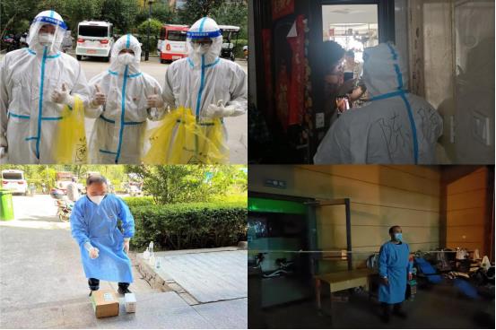 職工王衡在南苑街道濟(jì)安臺(tái)社區(qū)開(kāi)展防疫宣傳、核酸檢測(cè)登記、居民物資采購(gòu)等工作