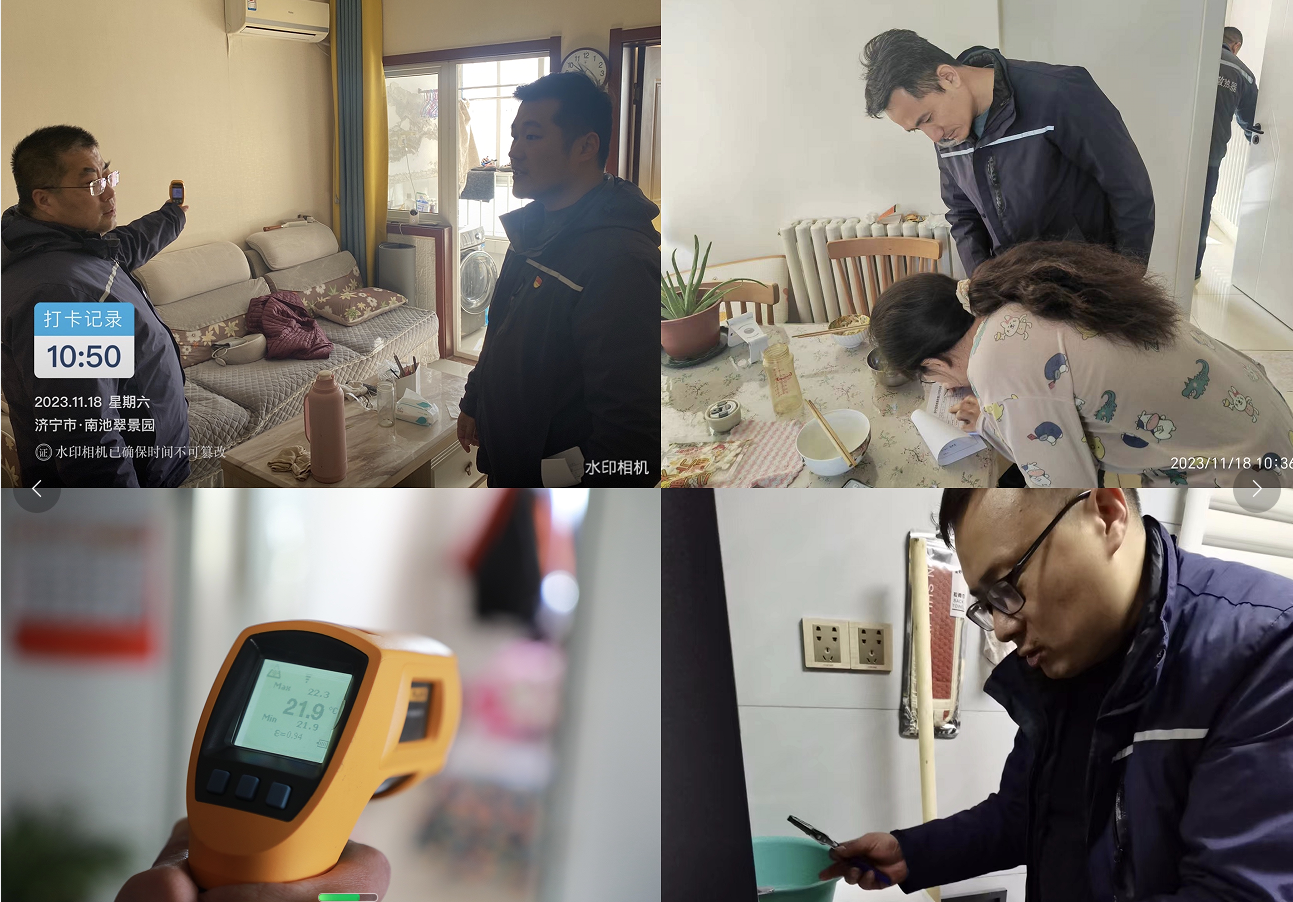 活動開始前,四和供熱黨支部書記向全體黨員闡述了此次活動的意義和目的,明確了活動的要求和安排,表達了為用戶提供優(yōu)質(zhì)供熱服務(wù)的堅定決心和信心。隨后,領(lǐng)導(dǎo)班子成員帶隊前往九九花園、鳳凰城、水韻城等多個供熱轄區(qū)開展入戶走訪活動,并對邊角樓頭、頂層及底層用戶進行重點摸排走訪。在入戶走訪的過程中,黨員志愿者們主動亮身份、當(dāng)先鋒,積極認(rèn)領(lǐng)工作任務(wù),分組分樓逐一開展排查,現(xiàn)場測量室內(nèi)溫度、詢問用戶家中供熱情況,幫助用戶檢修室內(nèi)采暖設(shè)施,面對面、心貼心地與用戶進行“零距離”溝通交流,傾聽記錄用戶的意見建議,為用戶講解供熱相關(guān)的知識和注意事項,積極宣傳推廣“濟時熱”小程序,讓用戶體驗更加快捷、高效的報修服務(wù)。同時發(fā)放集合了水、電、氣、暖等多種民生服務(wù)聯(lián)絡(luò)方式于一體的最新優(yōu)化升級的綜合便民服務(wù)卡,方便用戶咨詢解決各類訴求問題。
